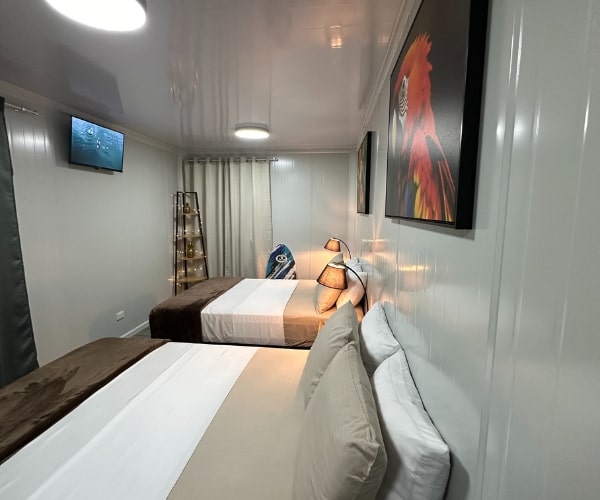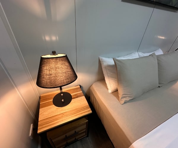 Queen beds with orthopedic mattresses, premium linens, and soft lighting to guarantee a deep and restorative sleep.